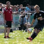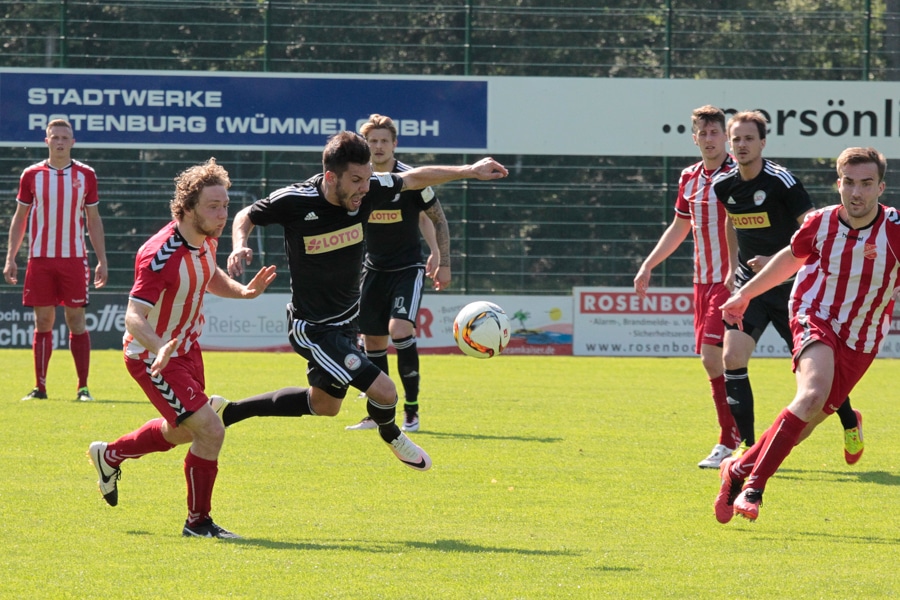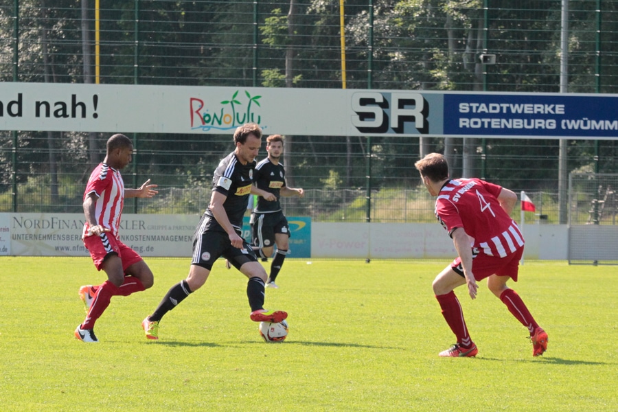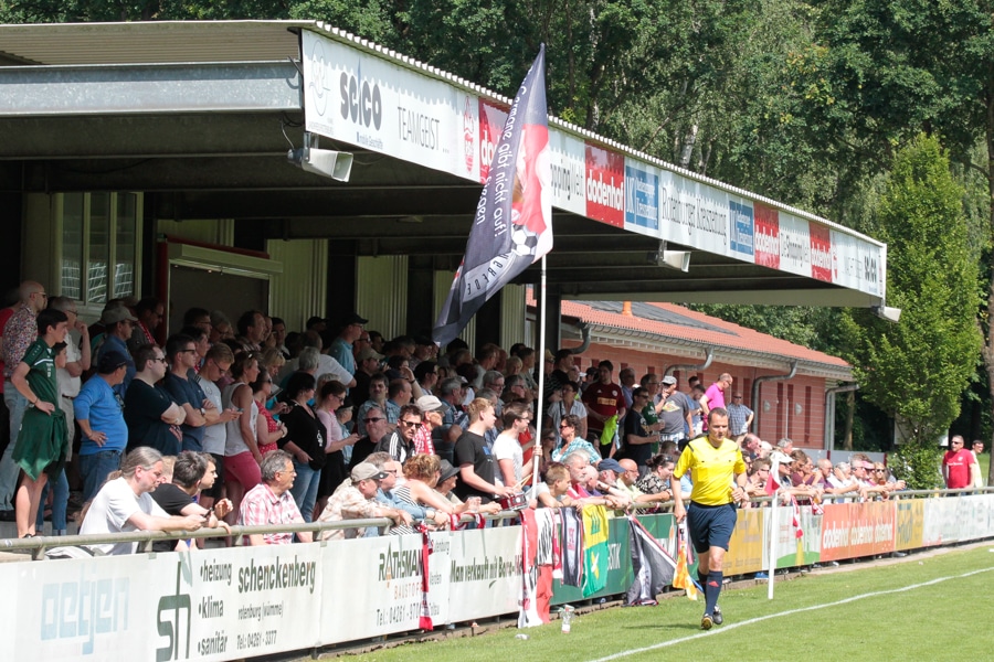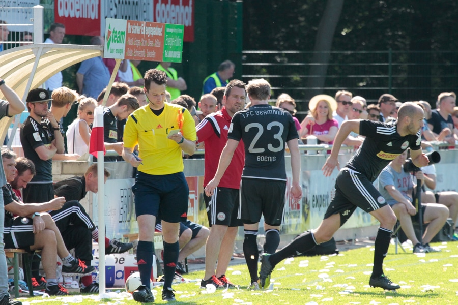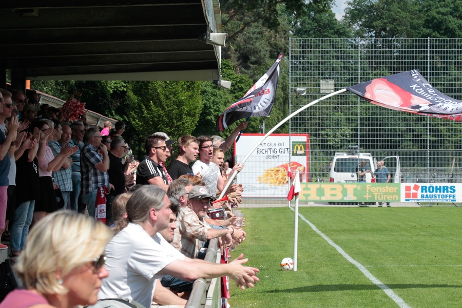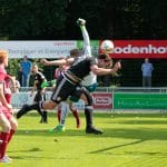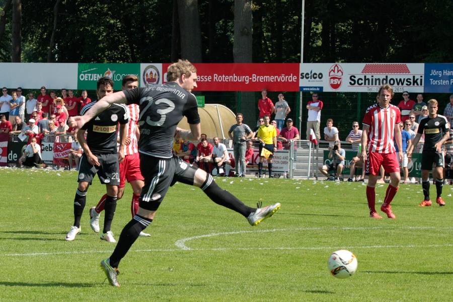 „Germania – Germania – Germania“ hallte es mittlerweile lautstark über die schöne Rotenburger Sportanlage in der Ahe. Die über 100 mitgereisten Germanen sorgten für die Unterstützung, die bei 30 Grad und zwei Mann Unterzahl notwendig waren. Und so gelang es unseren Roten, für die mittlerweile Beismann, Kelle und Baßler eingewechselt wurden, das Unentschieden über die Zeit zu retten. Eine große Teamleistung.