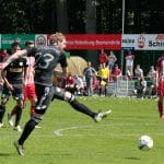 Halbzeit zwei begann mit einem klassichen Fehlstart: Zum Einen für unsere Germanen, die plötzlich einem 1:2 hinterherlaufen mussten und zum Anderen für das Schiedsrichtergespann, dem unter anderem dieser Faux-Pass ihre Beobachtungsnote verhagelt haben dürfte. Was war passiert? Marvin Stieler klärte vor dem ohrenbetäubend schreienden Eicheder Spieler den Ball. Dennoch ertönte ein Pfiff – Elfmeter. Filip Kraijnovic schnappte sich das Leder und brachte den SV Eichede überraschend in Front.
