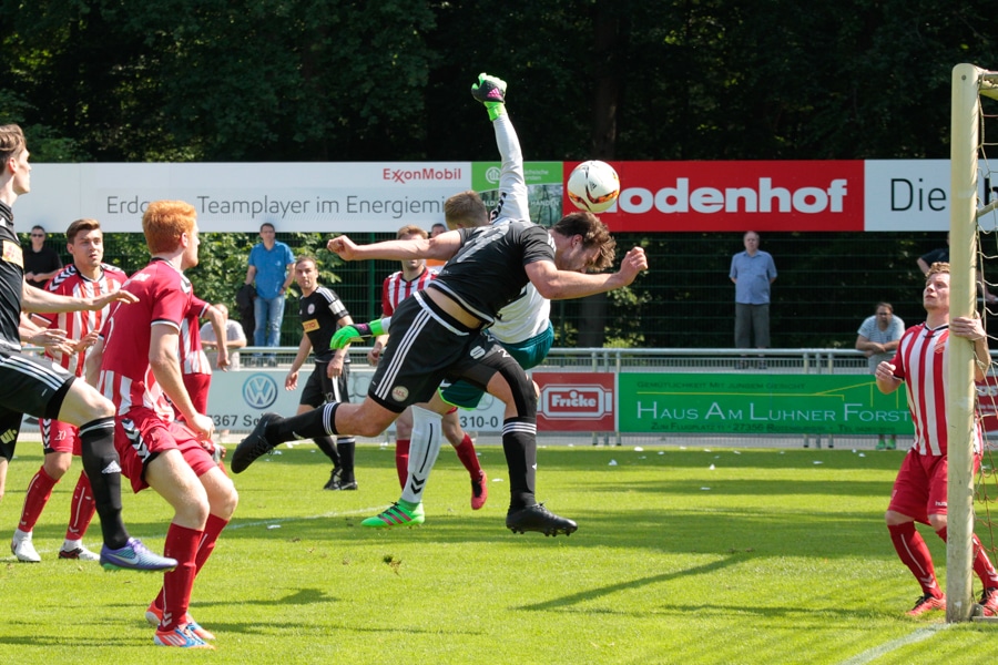 Dass das obligatorische Elfmeterschießen verloren ging, trübte die Stimmung nicht. Es bleiben der Stolz auf einen außergewöhnlichen Kampf und die Entschlossenheit, sich durch einen Heimerfolg am Dienstag, 19:30 Uhr gegen den Altonaer SC mit dem Aufstieg belohnen zu können.