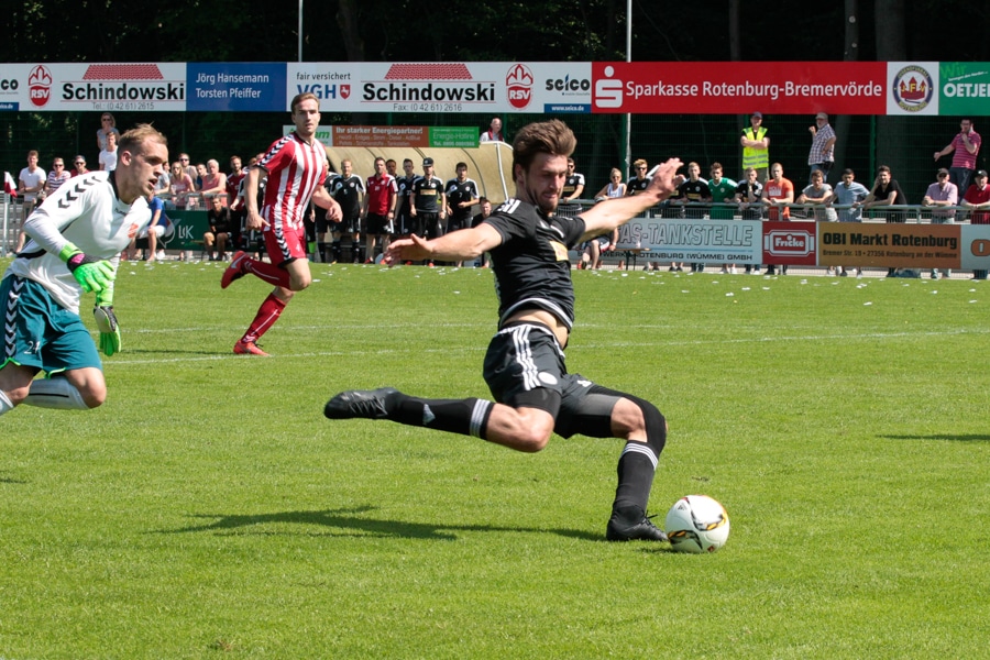 Auch das zweite Spiel der Germanen in der Aufstiegsrelegation für die Regionalliga Nord endete mit einem Remis. Auf neutralem Platz im Rotenburger Ahe-Stadion hieß es gegen den Meister aus Schleswig-Holstein, den SV Eichede, am Ende 2:2 Unentschieden.